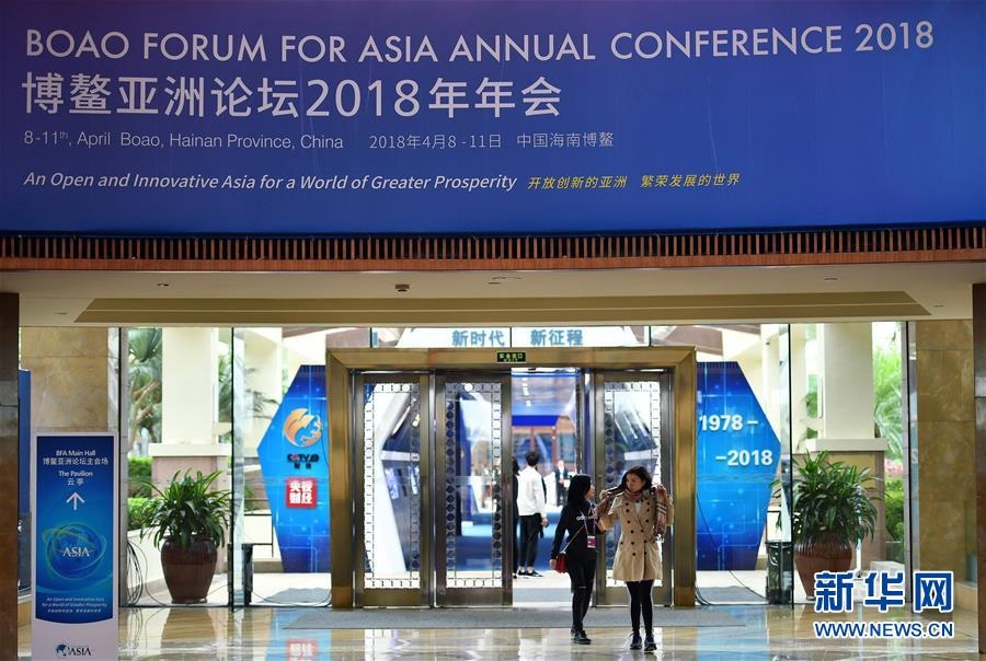 這是通往博鰲亞洲論壇2018年年會主會場的通道(2018年4月7日攝)。新華社記者郭程攝