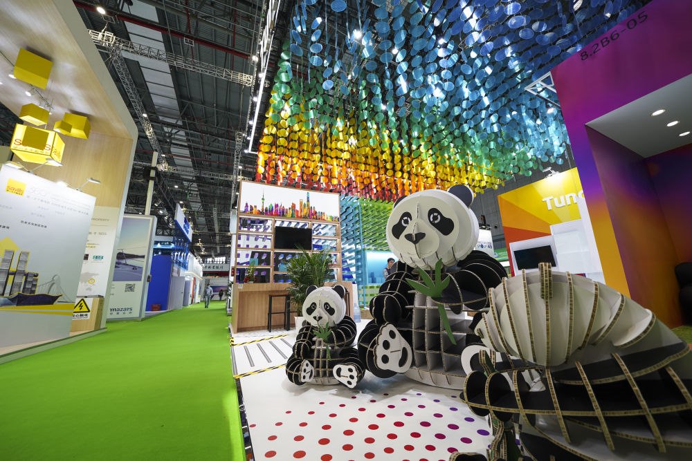 △在國家會(huì)展中心(上海)西入口處,吉祥物熊貓“進(jìn)寶”歡迎進(jìn)博會(huì)各國嘉賓。