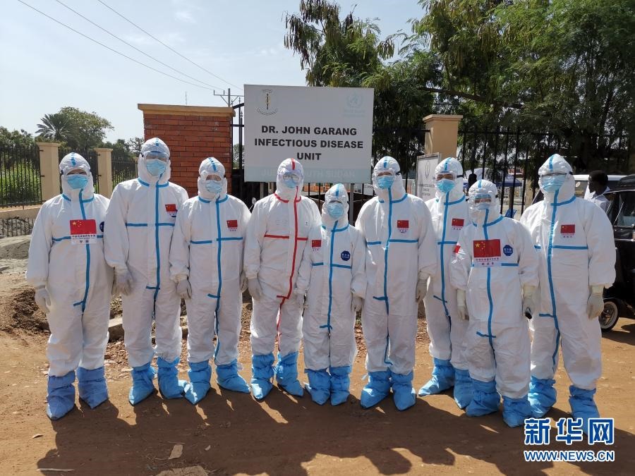 2020年8月21日,中國(guó)抗疫醫(yī)療專家組成員在南蘇丹首都朱巴的一處新冠肺炎治療機(jī)構(gòu)留影。新華社發(fā)(中國(guó)駐南蘇丹大使館供圖)