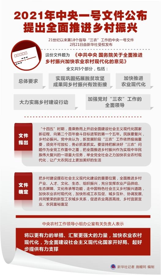 文件指出,“十四五”時(shí)期,是乘勢(shì)而上開啟全面建設(shè)社會(huì)主義現(xiàn)代化國(guó)家新征程、向第二個(gè)百年奮斗目標(biāo)進(jìn)軍的第一個(gè)五年。民族要復(fù)興,鄉(xiāng)村必振興。黨中央認(rèn)為,新發(fā)展階段“三農(nóng)”工作依然極端重要,須臾不可放松,務(wù)必抓緊抓實(shí)。要堅(jiān)持把解決好“三農(nóng)”問題作為全黨工作重中之重,把全面推進(jìn)鄉(xiāng)村振興作為實(shí)現(xiàn)中華民族偉大復(fù)興的一項(xiàng)重大任務(wù),舉全黨全社會(huì)之力加快農(nóng)業(yè)農(nóng)村現(xiàn)代化,讓廣大農(nóng)民過上更加美好的生活。