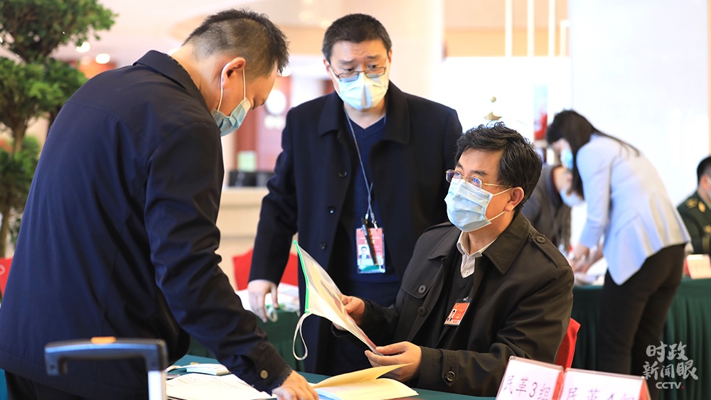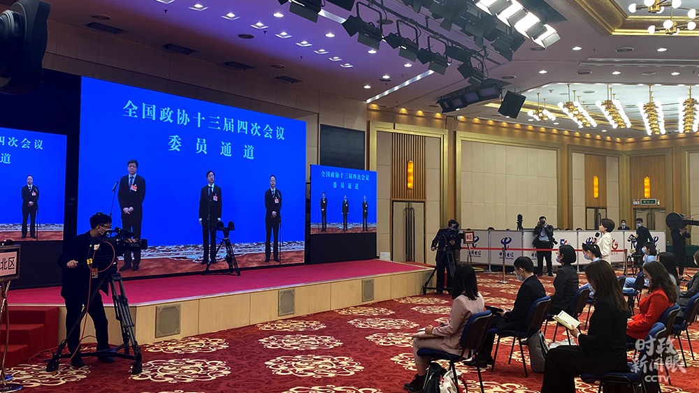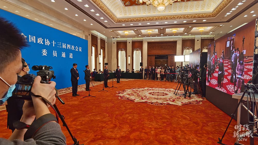 △當(dāng)天14:05,全國政協(xié)十三屆四次會議首場“委員通道”采訪活動舉行,依舊采用“隔屏對話”的網(wǎng)絡(luò)視頻采訪方式。(總臺央視記者鄭連凱、郭茜拍攝)