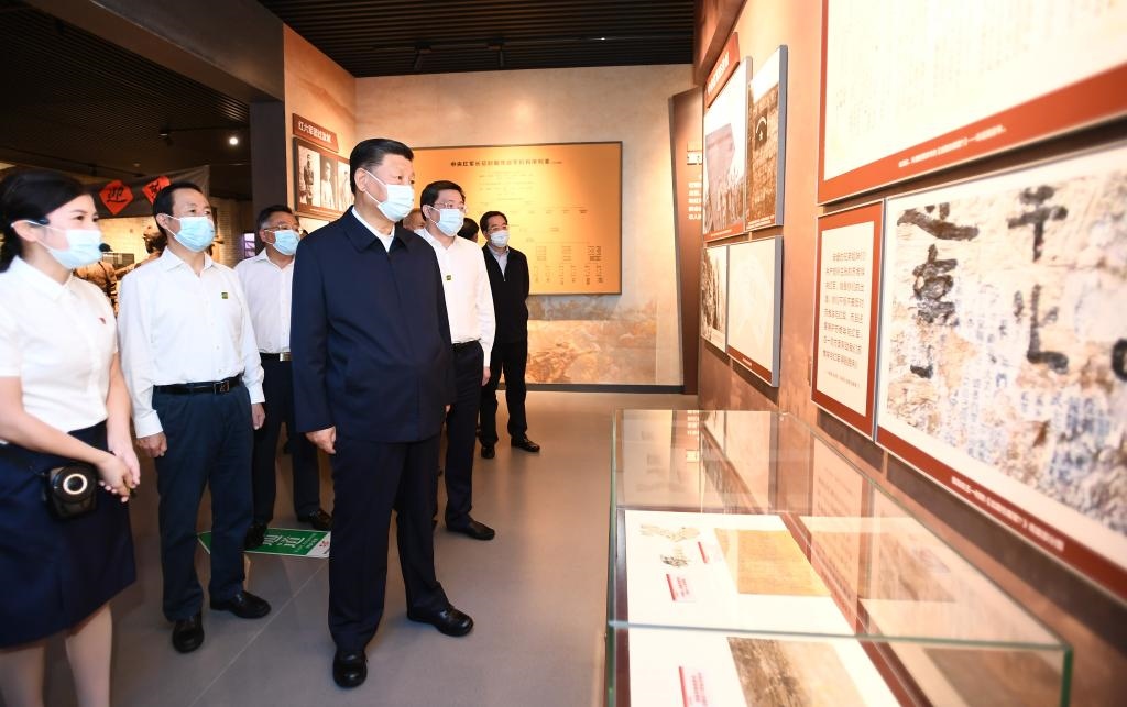 2020年9月16日,習近平在郴州市汝城縣文明瑤族鄉(xiāng)沙洲瑤族村“半條被子的溫暖”專題陳列館,了解當?shù)亻_展紅色教育情況。(新華社記者謝環(huán)馳攝)