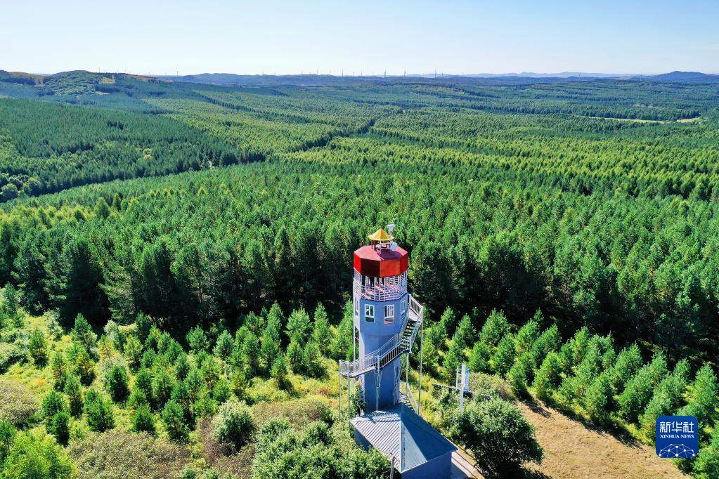 河北塞罕壩機械林場內(nèi)的望海樓(8月23日攝,無人機照片)。新華社記者牟宇攝