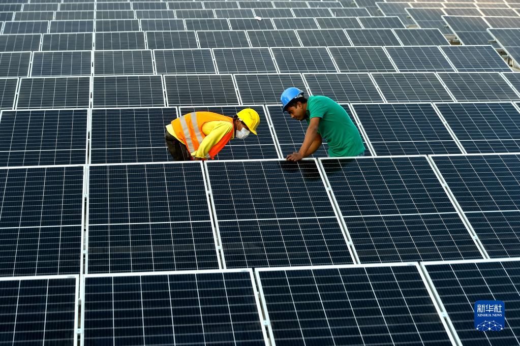 2021年1月3日,在位于孟加拉國首都達卡郊區(qū)的利德成集團廠區(qū),工人們在房頂組裝光伏模組。從2020年開始,中資制衣類企業(yè)——利德成集團在其位于孟加拉國達卡的廠區(qū)內(nèi)建設(shè)光伏電站,以降低對傳統(tǒng)能源的依賴,減少碳排放,從綠色發(fā)展的角度助力“一帶一路”建設(shè)。新華社發(fā)