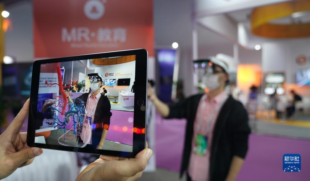 2020年10月19日,2020世界VR產(chǎn)業(yè)大會云峰會在江西省南昌市開幕,這是觀眾在大會VR/AR產(chǎn)品和應(yīng)用展覽會上體驗“MR交互系統(tǒng)”在醫(yī)務(wù)教學(xué)上的應(yīng)用。新華社記者胡晨歡攝