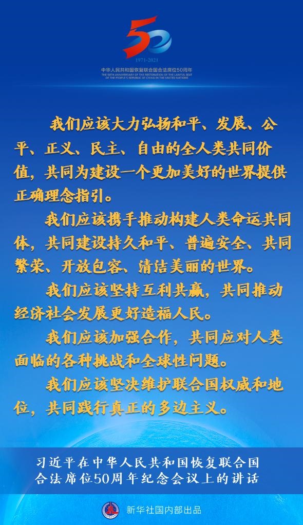 10月25日,習(xí)近平主席在北京出席中華人民共和國恢復(fù)聯(lián)合國合法席位50周年紀(jì)念會議并發(fā)表重要講話。約20分鐘的講話,“共同”一詞出現(xiàn)了24次。
