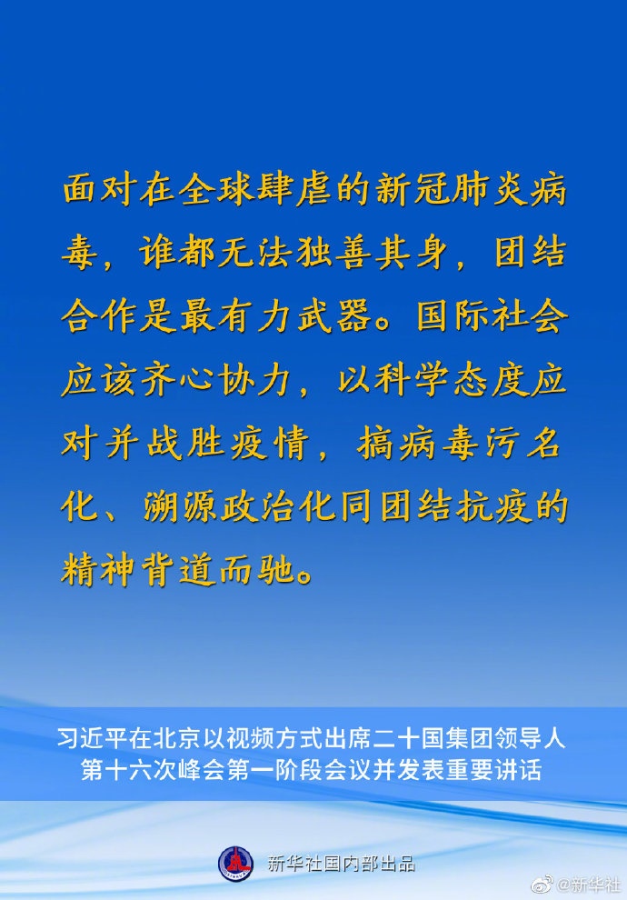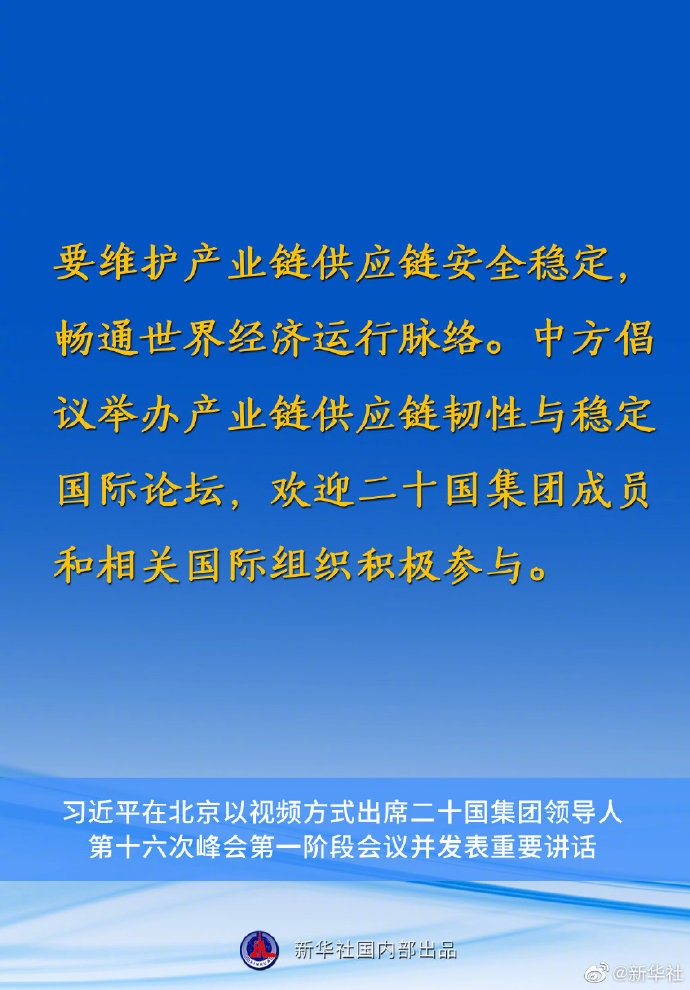 習(xí)近平主席在二十國(guó)集團(tuán)領(lǐng)導(dǎo)人第十六次峰會(huì)第一階段會(huì)議上的重要講話(huà)要點(diǎn)速覽