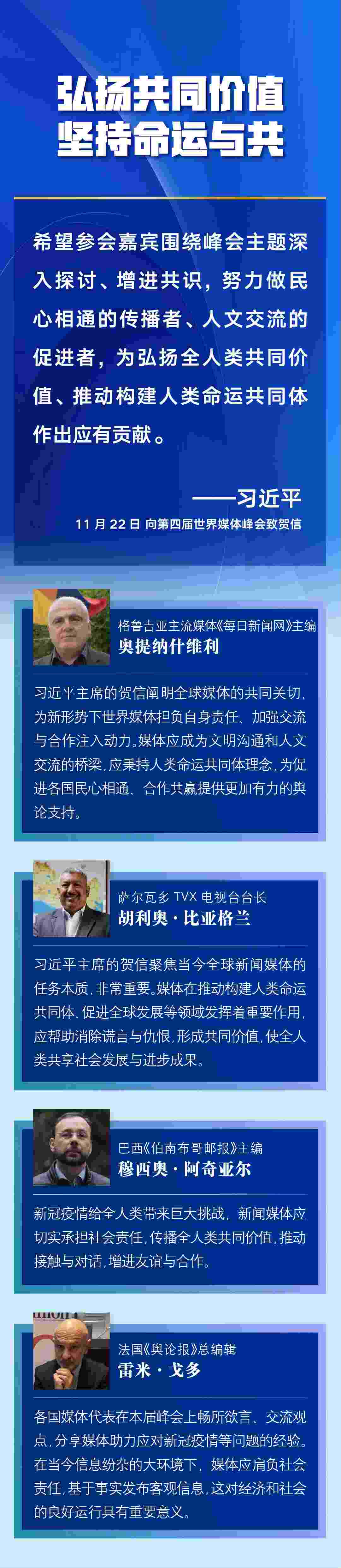 多國媒體人士認(rèn)為,習(xí)近平主席的賀信對全球媒體更好肩負(fù)社會(huì)責(zé)任、廣泛凝聚世界共識(shí)作出重要闡述,為新形勢下世界媒體加強(qiáng)交流與合作、弘揚(yáng)全人類共同價(jià)值、推動(dòng)構(gòu)建人類命運(yùn)共同體注入新的推動(dòng)力——