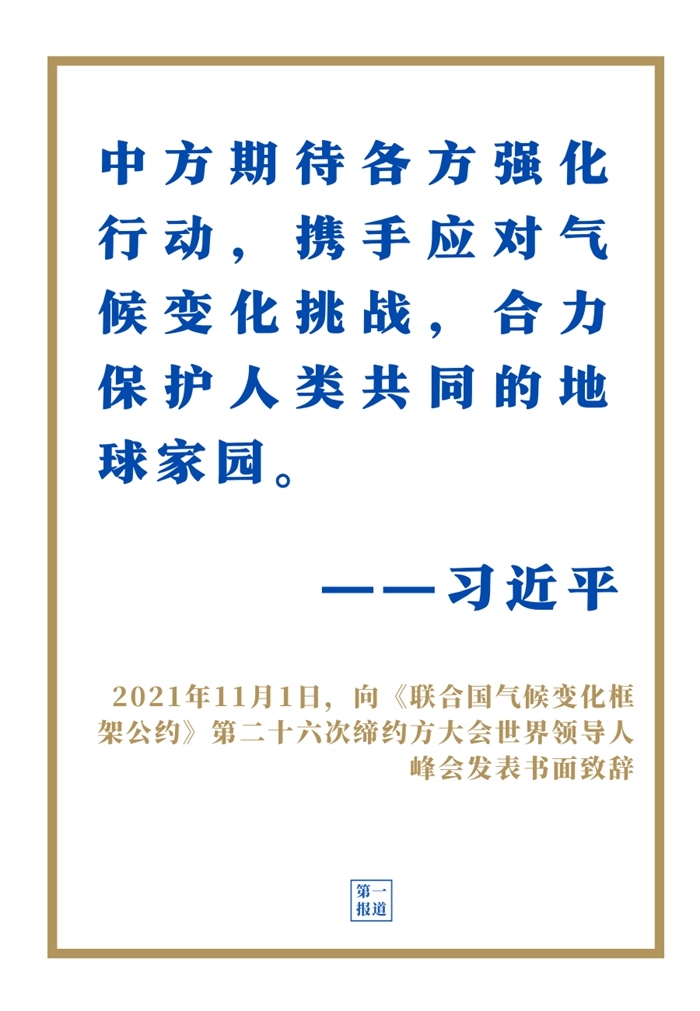 ——“應(yīng)對(duì)氣候變化等全球性挑戰(zhàn),多邊主義是良方?!?/strong>在《聯(lián)合國氣候變化框架公約》第二十六次締約方大會(huì)世界領(lǐng)導(dǎo)人峰會(huì)上,習(xí)近平主席強(qiáng)調(diào)“維護(hù)多邊共識(shí)”。
