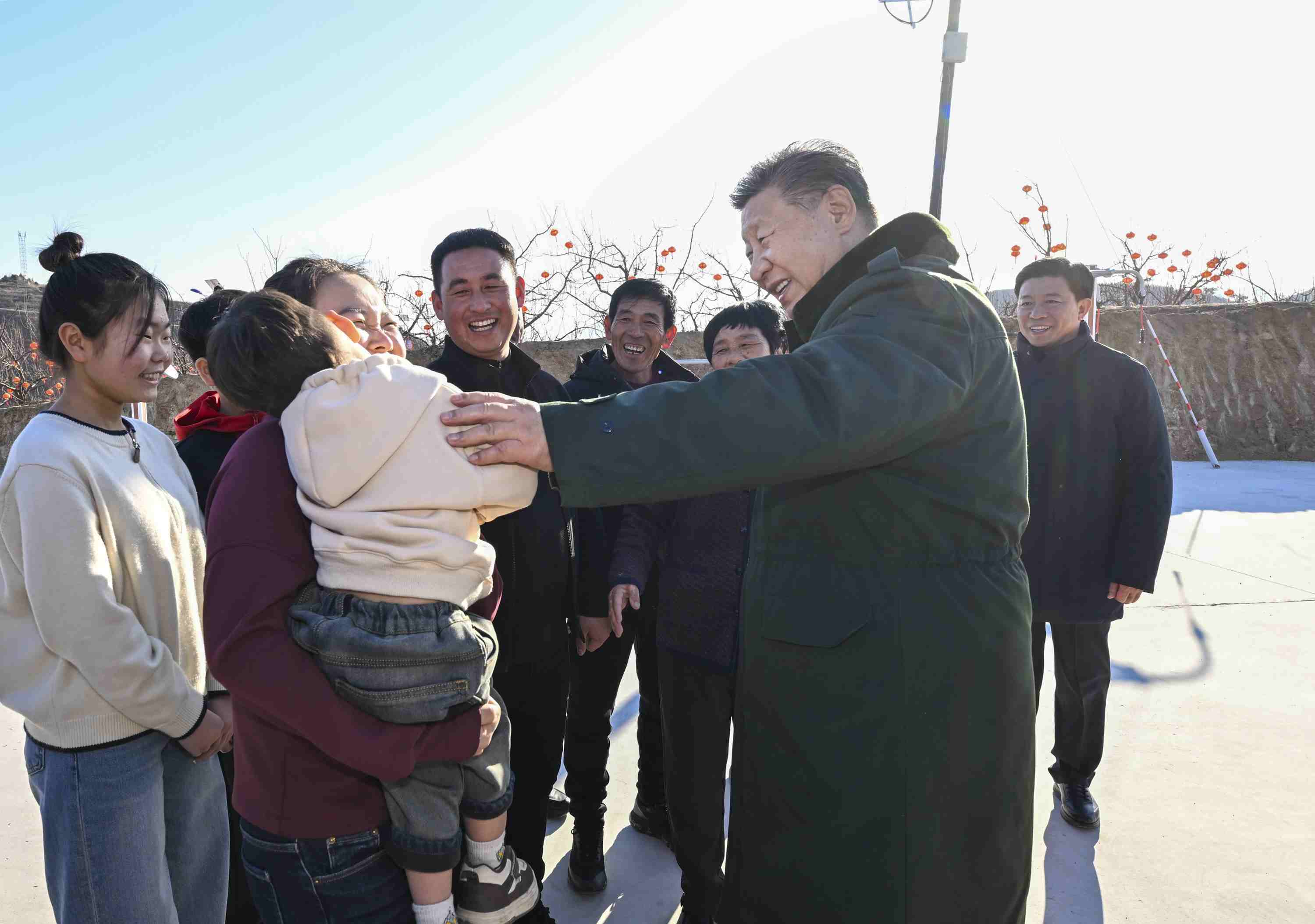 聽說總書記的到來,索南才讓家門口的道路兩旁,早已圍滿了村民。大家紛紛捧出潔白的哈達,熱烈地鼓掌,高聲向總書記問好。
