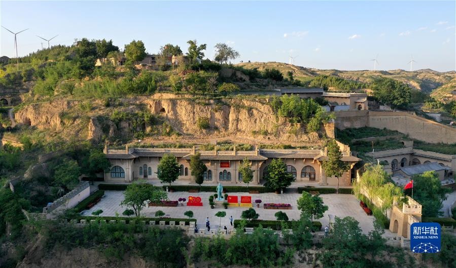 游人在陜西省榆林市米脂縣楊家溝革命舊址參觀(9月10日攝,無人機(jī)照片)。新華社記者陶明攝