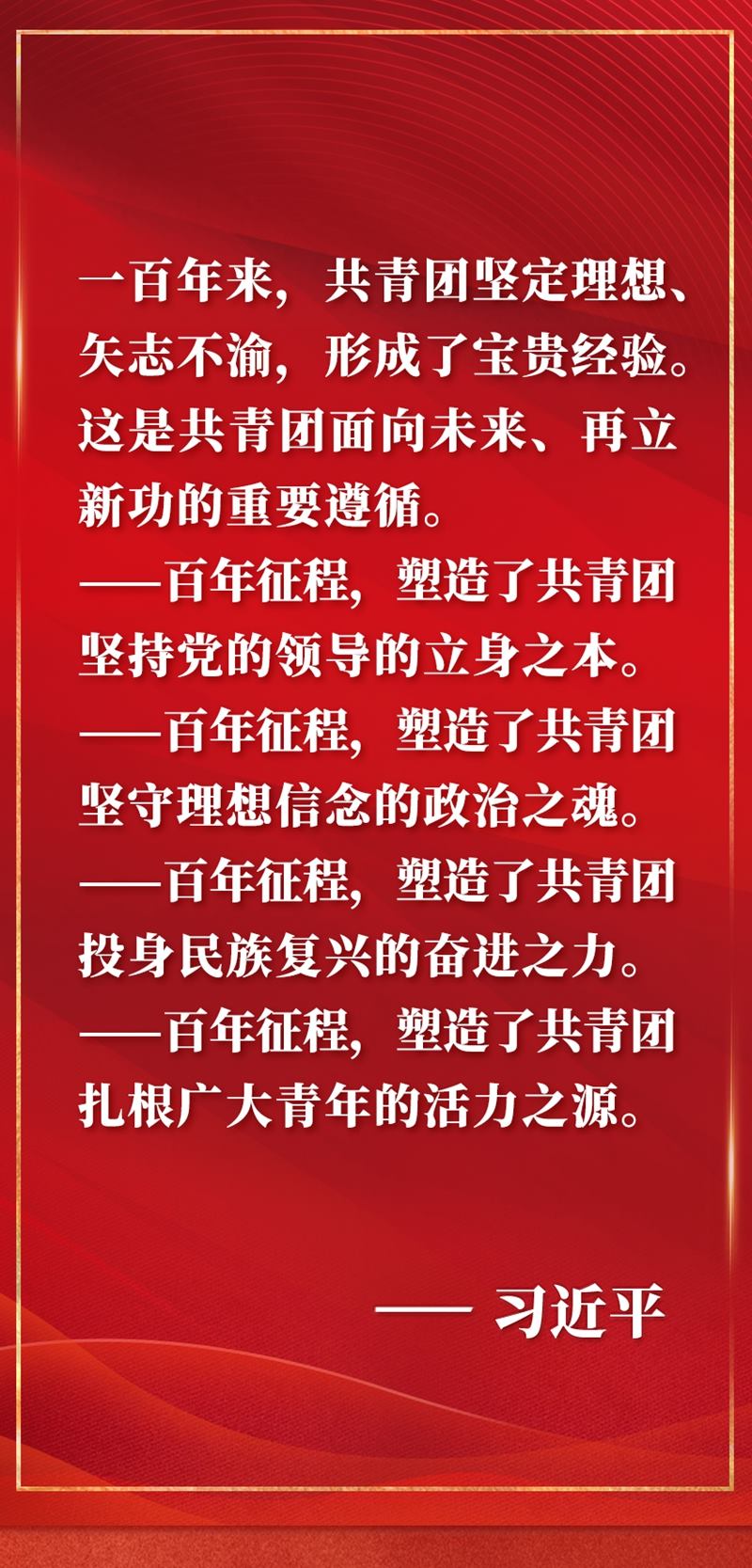 慶祝中國共產(chǎn)主義青年團成立100周年大會10日上午在北京人民大會堂隆重舉行。中共中央總書記、國家主席、中央軍委主席習近平在會上發(fā)表重要講話,全面回顧百年來共青團堅定不移聽黨話、跟黨走的奮斗歷程,深刻闡明共青團和青年工作的寶貴經(jīng)驗,對當代青年寄予殷切期望,對做好新時代共青團工作提出明確要求。