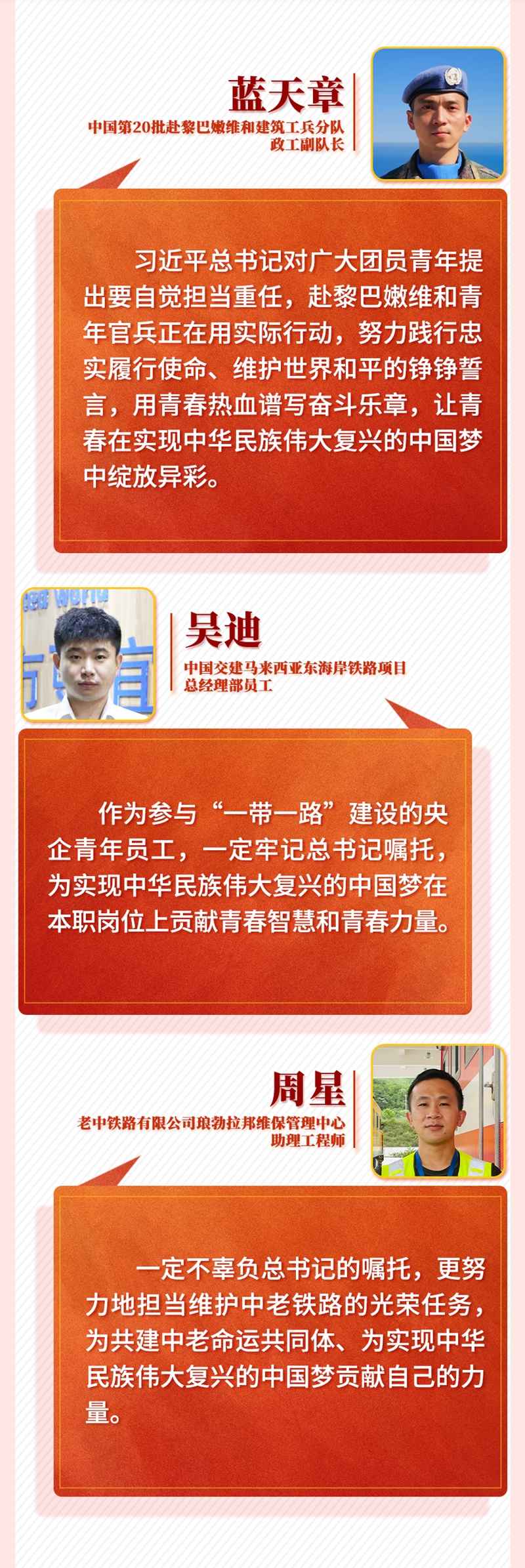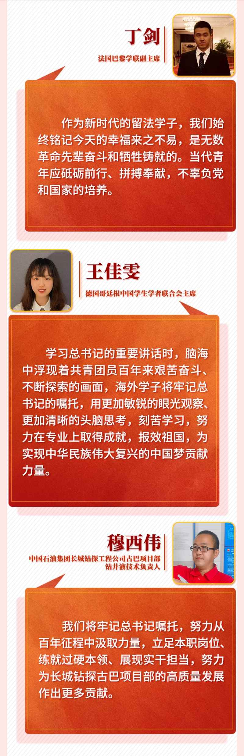 習近平總書記的重要講話令身在海外的中國青年備受鼓舞。他們一致表示,作為新時代的中國青年,一定牢記習近平總書記囑托,帶著夢想和使命,讓青春在海外煥發(fā)異彩,在實現(xiàn)中華民族偉大復興中國夢的新征程上奮勇前進,用青春的智慧和汗水打拼出一個更加美好的中國。