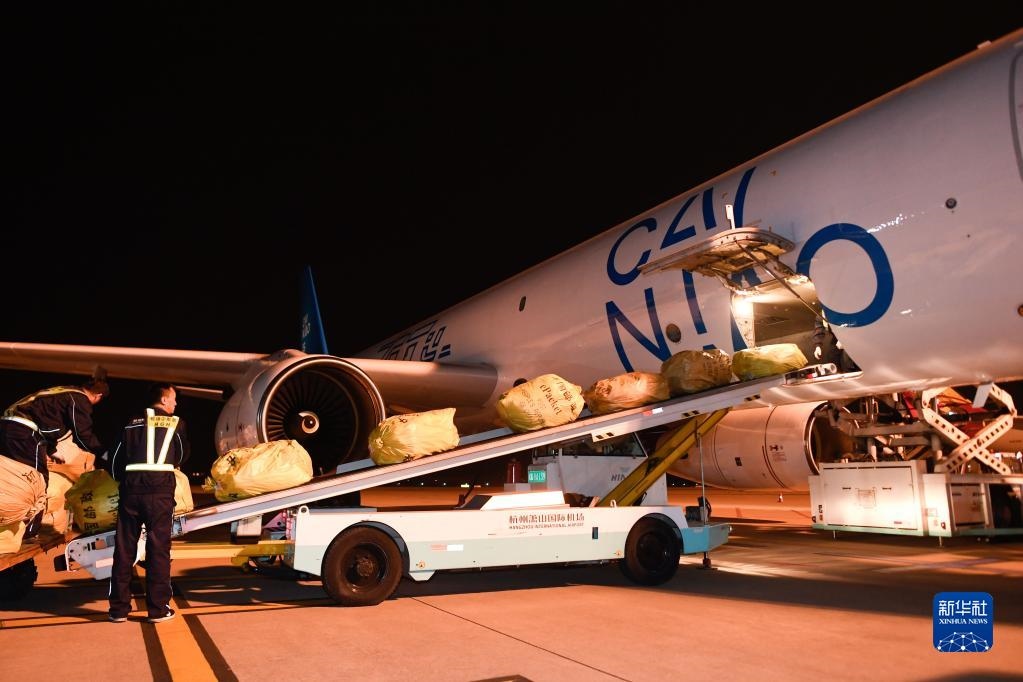 2019年10月30日凌晨,浙江杭州飛往俄羅斯首都莫斯科的首條直達(dá)電商貨運(yùn)航線“菜鳥號”從蕭山國際機(jī)場首航。新華社記者黃宗治攝