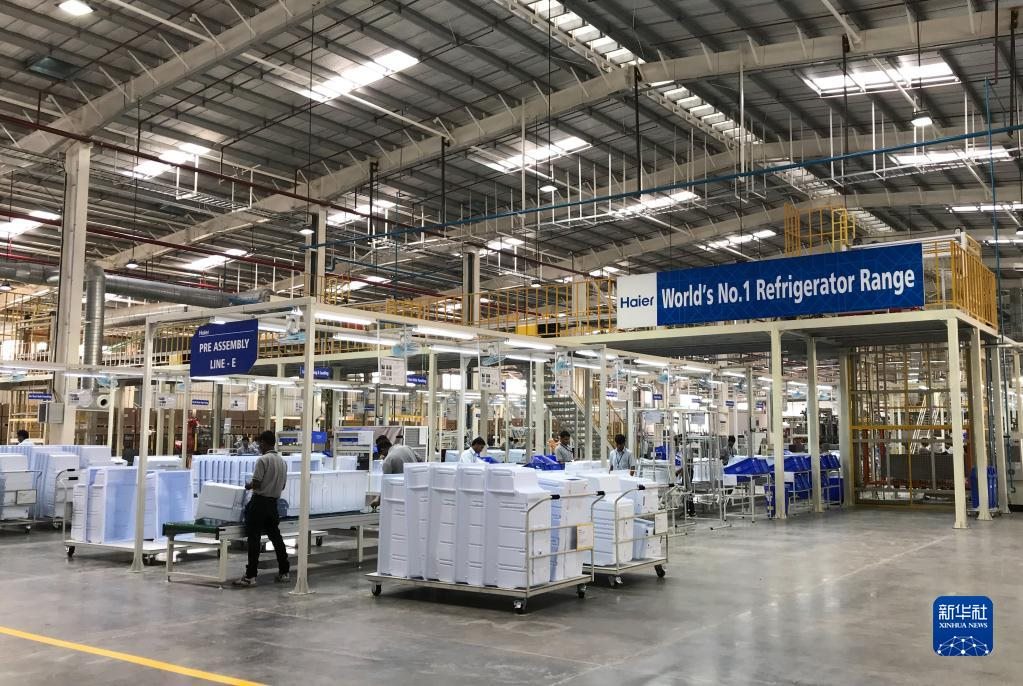 2017年11月16日,在印度浦那市,工人在中國海爾集團(tuán)工業(yè)園廠房內(nèi)工作。新華社記者張興軍攝