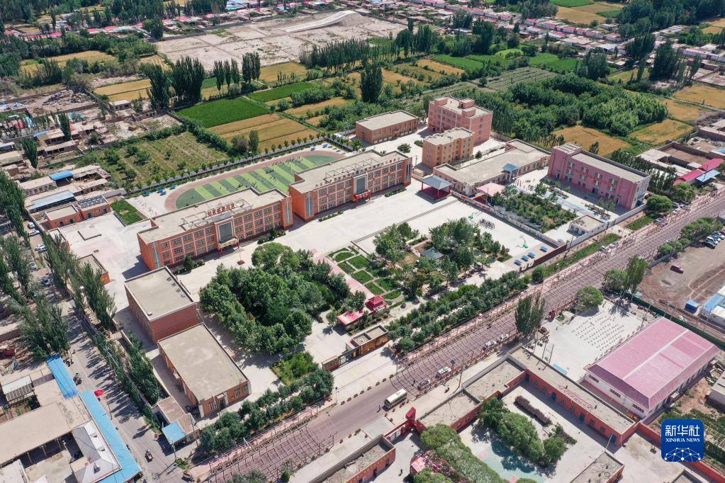 這是新疆喀什地區(qū)疏附縣托克扎克鎮(zhèn)中心小學(2022年6月10日攝,無人機照片)。新華社記者 丁磊 攝