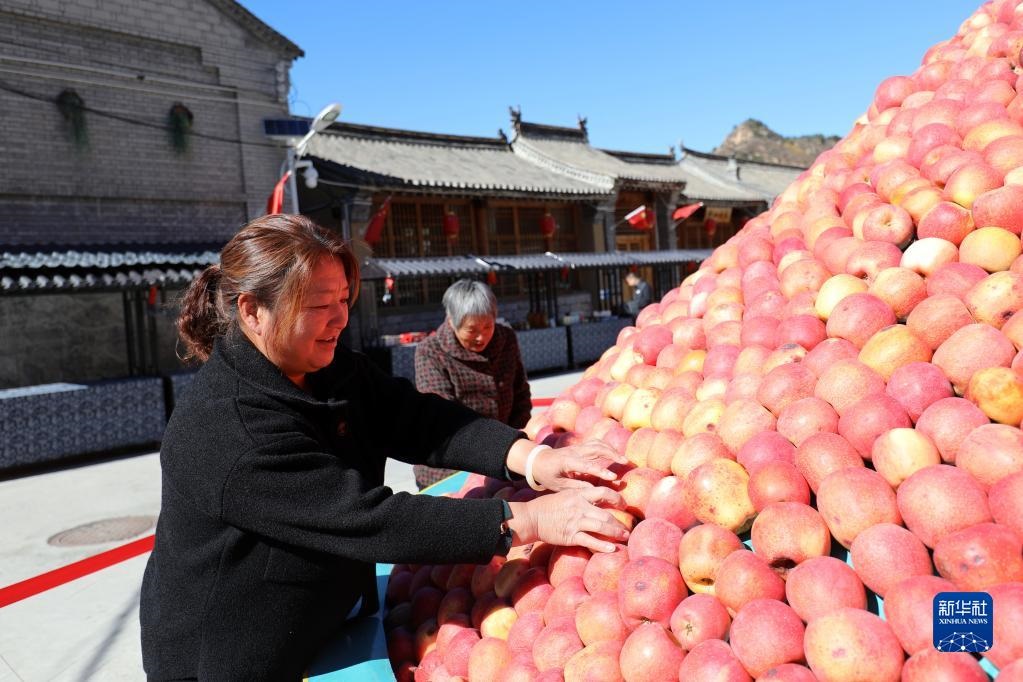10月17日,河北阜平縣駱駝灣村村民在整理蘋果。新華社記者 駱學(xué)峰 攝