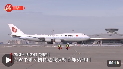當地時間3月20日下午,國家主席習近平乘專機抵達俄羅斯首都莫斯科。