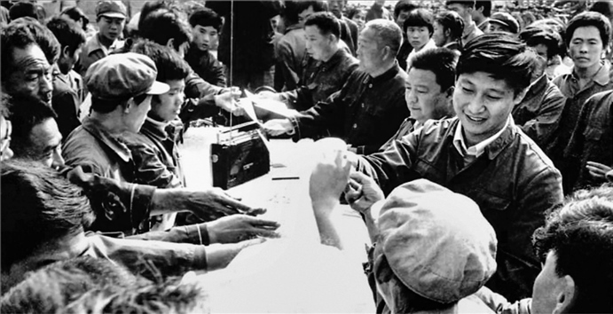 △1983年,時(shí)任河北正定縣委書記的習(xí)近平,臨時(shí)在大街上擺桌子聽取老百姓意見。