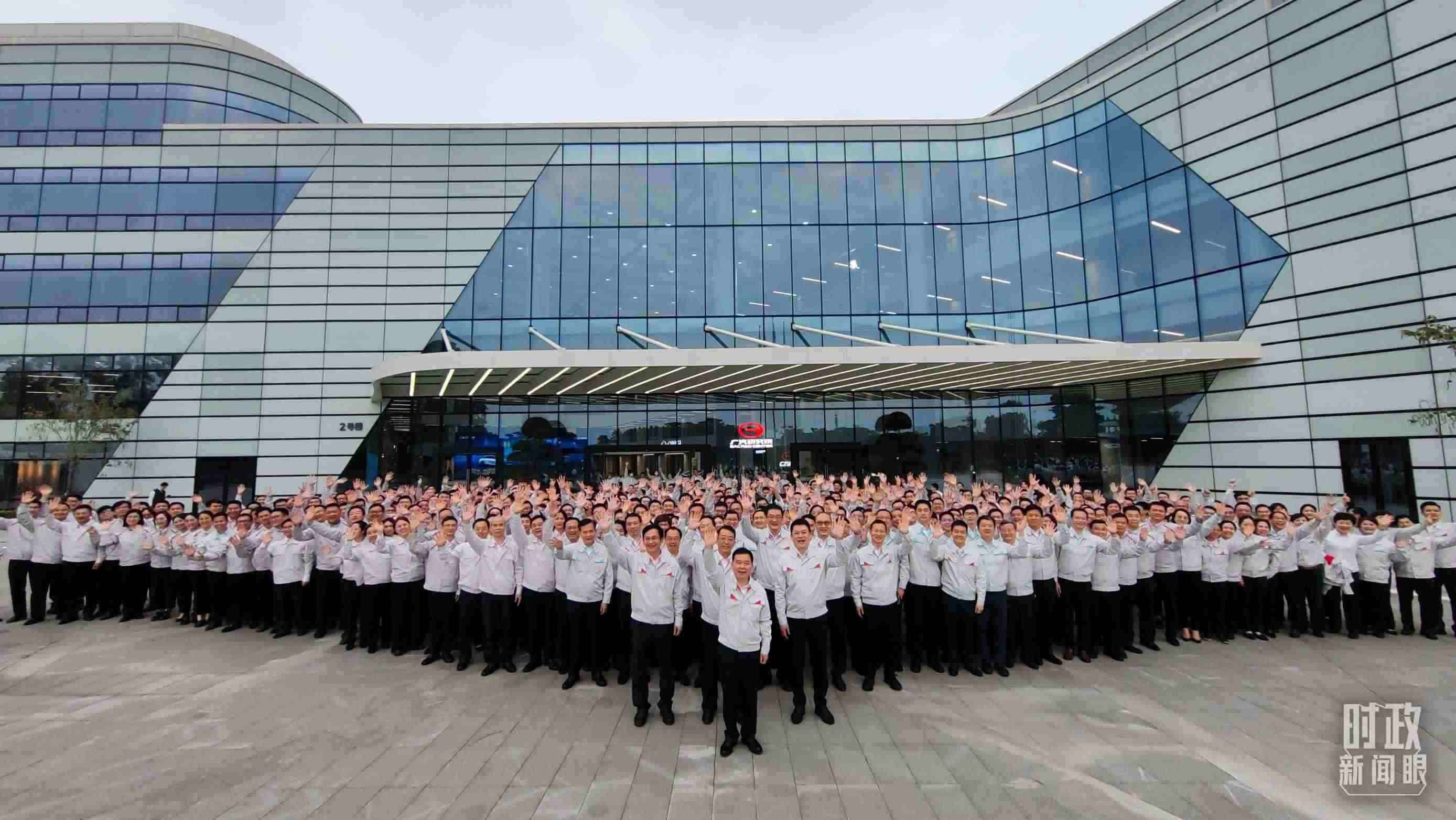 △考察當(dāng)天,廣汽員工代表大合影。(總臺央視記者張曉鵬拍攝)
