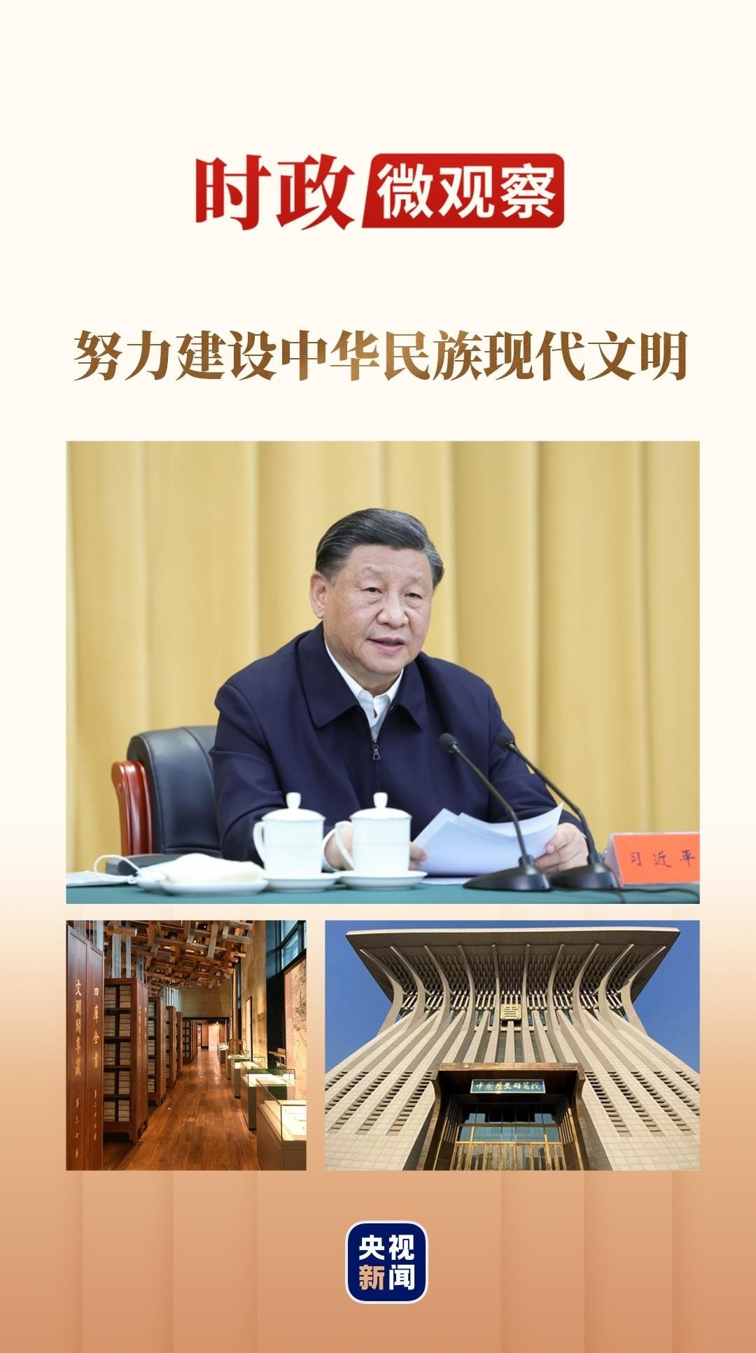 翌日,總書(shū)記又乘車(chē)來(lái)到中國(guó)歷史研究院,參觀(guān)文明起源和宅茲中國(guó)專(zhuān)題展,察看部分館藏珍貴古籍和文獻(xiàn)檔案,寄語(yǔ)“為中國(guó)式現(xiàn)代化建設(shè)貢獻(xiàn)更多中國(guó)史學(xué)的智慧和力量”。