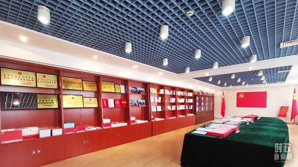 △內(nèi)蒙古自治區(qū)自然資源廳黨員活動(dòng)室。2019年7月,習(xí)近平總書(shū)記曾在這里調(diào)研指導(dǎo)自然資源廳開(kāi)展“不忘初心、牢記使命”主題教育。(總臺(tái)央視記者張曉鵬拍攝)