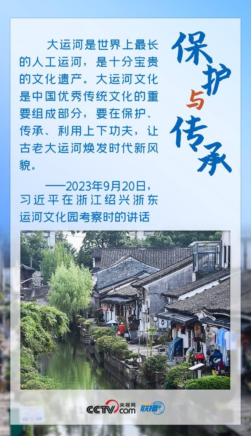 習近平總書記一直心系大運河保護、傳承與利用工作。2017年,他對建設(shè)大運河文化帶作出重要指示,明確指出“要統(tǒng)籌保護好、傳承好、利用好”大運河。此次考察,總書記再次強調(diào)“要在保護、傳承、利用上下功夫”。保護、傳承、利用是辯證統(tǒng)一的,保護是前提,利用是過程,傳承發(fā)展是目的,三者相互依存,方能彰顯價值。文化遺產(chǎn)是先人創(chuàng)造并遺留下來的寶貴財富,是一個國家和民族文明延續(xù)的內(nèi)在脈絡(luò)與創(chuàng)新創(chuàng)造的動力源泉。在保護的基礎(chǔ)上研究利用好這些人類文明的瑰寶,才能更好做到傳承發(fā)展。