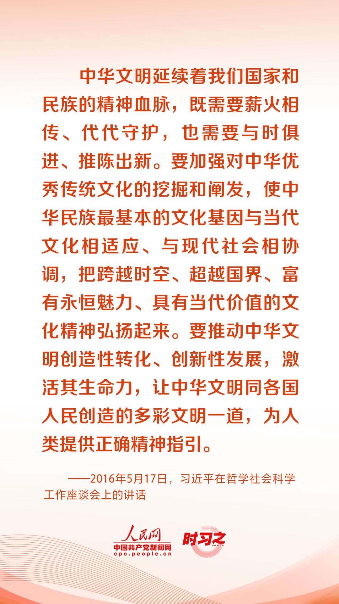 “每一種文明都延續(xù)著一個國家和民族的精神血脈,既需要薪火相傳、代代守護,更需要與時俱進、勇于創(chuàng)新?!秉h的十八大以來,習近平總書記深刻把握新時代歷史方位,以堅定的文化自覺、宏闊的歷史視野、深遠的戰(zhàn)略考量,就文化建設(shè)提出了一系列新理念新思想新戰(zhàn)略,引領(lǐng)中華文化創(chuàng)造性轉(zhuǎn)化、創(chuàng)新性發(fā)展,推動中華文脈綿延繁盛、中華文明歷久彌新。
