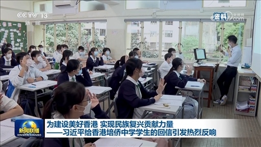 央視網(wǎng)消息(新聞聯(lián)播):習(xí)近平主席24日給香港培僑中學(xué)高一年級全體學(xué)生回信,對他們予以親切勉勵。香港培僑中學(xué)師生表示,收到習(xí)主席的回信深受鼓舞,他們將不負(fù)習(xí)主席的期望,堅(jiān)持讀萬卷書,行萬里路,融入國家發(fā)展,為建設(shè)美好香港,實(shí)現(xiàn)民族復(fù)興貢獻(xiàn)力量。