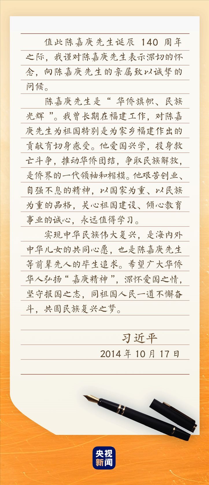 2014年10月21日,福建廈門。紀念陳嘉庚誕辰140周年座談會現(xiàn)場,雷鳴般的掌聲經(jīng)久不息。習近平總書記的回信,讓大家激動不已——