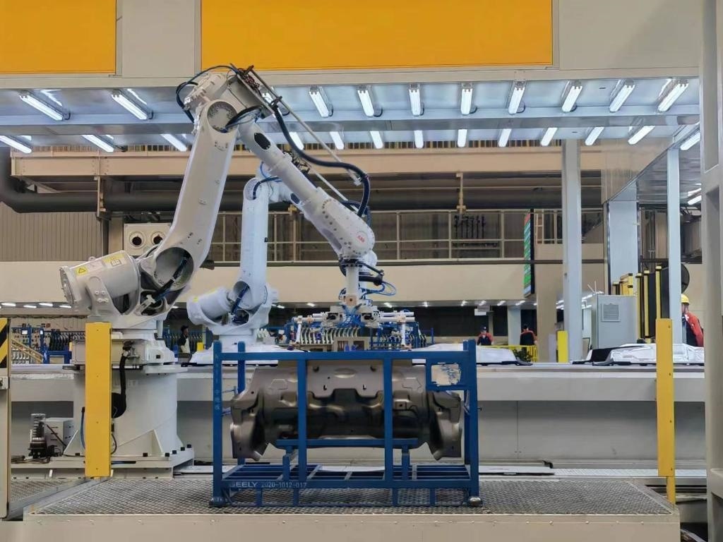 吉利汽車西安工廠沖壓車間機(jī)器人正在自動(dòng)抓件。新華社記者姜辰蓉 攝