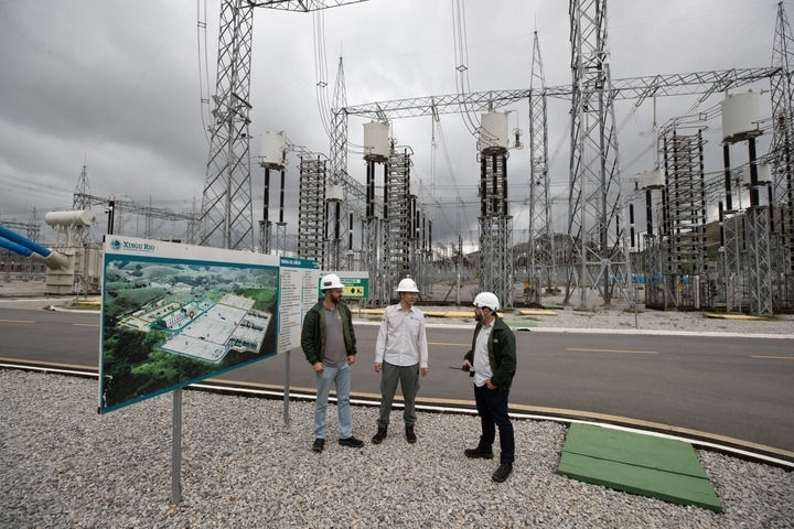 2022年9月30日,在巴西里約熱內(nèi)盧美麗山特高壓輸電二期項(xiàng)目里約換流站,國網(wǎng)巴控公司換流站運(yùn)維主管(中)和巴方人員交談。新華社記者 王天聰 攝