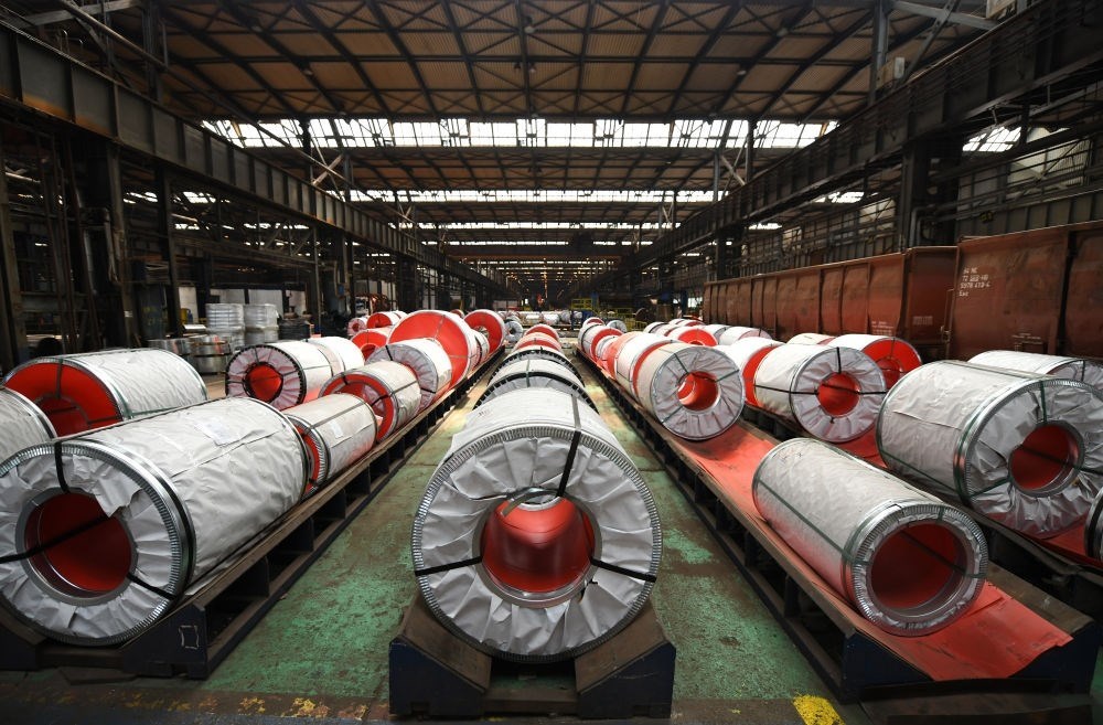 這是在河鋼集團塞爾維亞斯梅戴雷沃鋼廠拍攝的成品鋼卷(2023年5月5日攝)。新華社記者 任鵬飛 攝