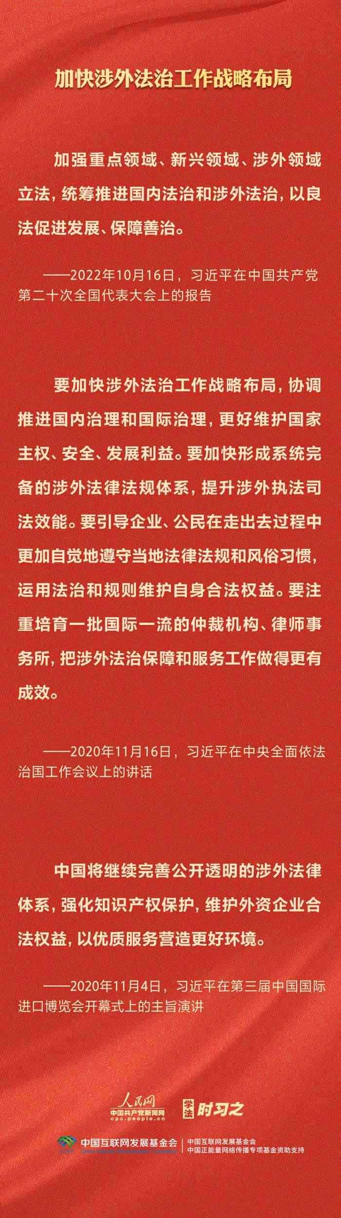 今年是貫徹落實(shí)黨的二十大精神的開(kāi)局之年。中共中央政治局決定從今年4月開(kāi)始,在全黨自上而下開(kāi)展學(xué)習(xí)貫徹習(xí)近平新時(shí)代中國(guó)特色社會(huì)主義思想主題教育。習(xí)近平法治思想是習(xí)近平新時(shí)代中國(guó)特色社會(huì)主義思想的重要組成部分,人民網(wǎng)·中國(guó)共產(chǎn)黨新聞網(wǎng)推出學(xué)法時(shí)習(xí)之·學(xué)習(xí)習(xí)近平法治思想系列策劃,本篇聚焦“堅(jiān)持統(tǒng)籌推進(jìn)國(guó)內(nèi)法治和涉外法治”。
