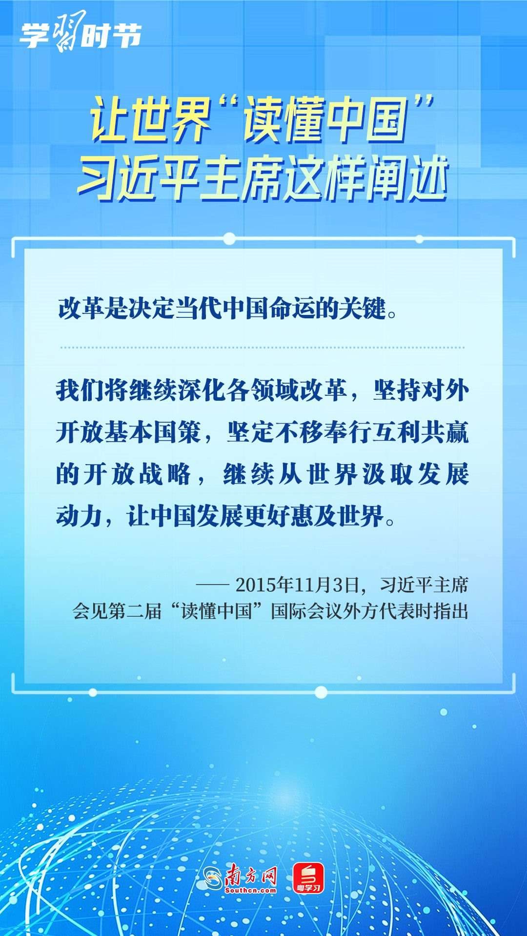 習近平主席高度重視“讀懂中國”國際會議,多次會見與會代表、向會議致辭或致賀信,闡述中國的發(fā)展道路、改革開放、對外政策等,讓我們一同學習。