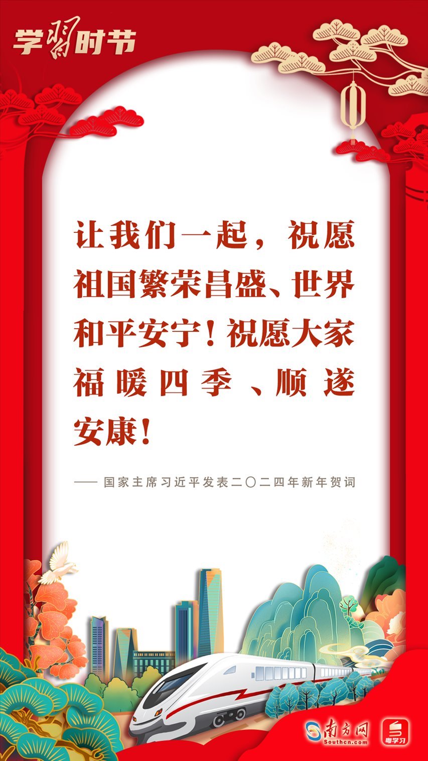 2023年12月31日晚,國家主席習(xí)近平在北京發(fā)表二〇二四年新年賀詞。賀詞飽含對廣大人民群眾的深情,彰顯對中國發(fā)展的堅定信心?;厥走^往,展望未來;砥礪前行,征程再起。讓我們一起在習(xí)近平主席的新年賀詞中感受直抵心靈的溫暖、催人奮進(jìn)的力量!