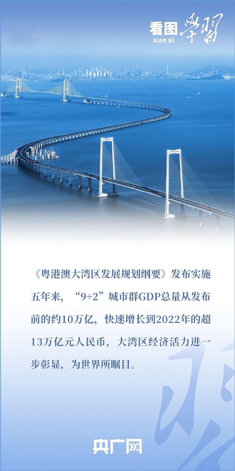 2019年2月,《粵港澳大灣區(qū)發(fā)展規(guī)劃綱要》正式發(fā)布。五年來,習近平總書記多次作出重要部署和深刻闡述,引領推進粵港澳大灣區(qū)高水平建設??倳洀娬{,要使粵港澳大灣區(qū)成為新發(fā)展格局的戰(zhàn)略支點、高質量發(fā)展的示范地、中國式現(xiàn)代化的引領地。一起來學習!