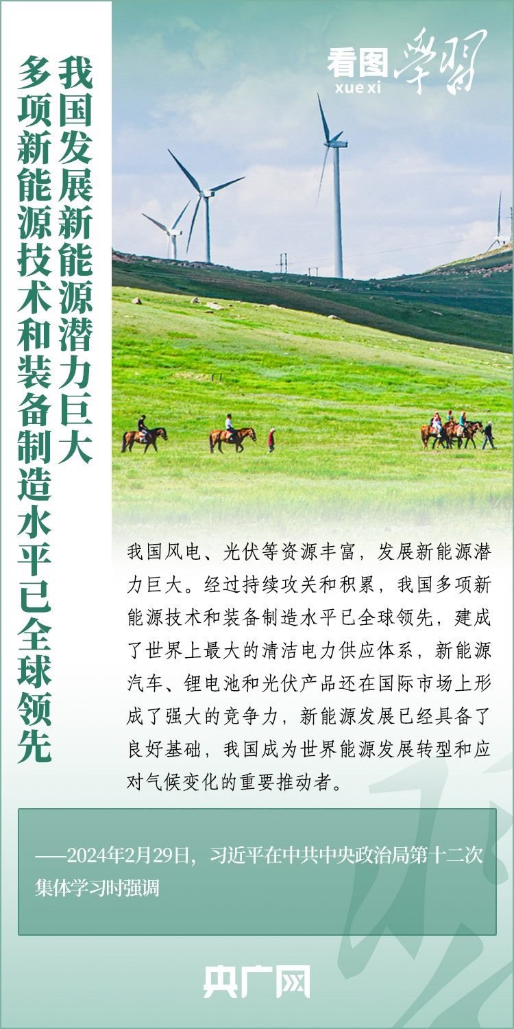 能源安全事關(guān)經(jīng)濟(jì)社會(huì)發(fā)展全局。2月29日,習(xí)近平總書記在中共中央政治局第十二次集體學(xué)習(xí)時(shí)強(qiáng)調(diào),我們要順勢(shì)而為、乘勢(shì)而上,以更大力度推動(dòng)我國(guó)新能源高質(zhì)量發(fā)展,為中國(guó)式現(xiàn)代化建設(shè)提供安全可靠的能源保障,為共建清潔美麗的世界作出更大貢獻(xiàn)。一起來(lái)學(xué)習(xí)!