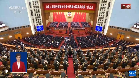 3月4日下午3時(shí),全國(guó)政協(xié)十四屆二次會(huì)議在人民大會(huì)堂開幕,全體起立,高唱中華人民共和國(guó)國(guó)歌。