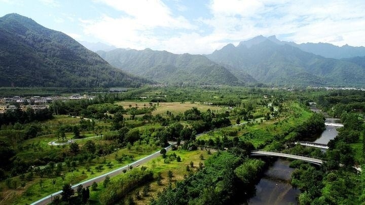 △陜西省西安市長安區(qū)秦嶺違建別墅“群賢別業(yè)”拆除后建設的秦嶺和諧森林公園。