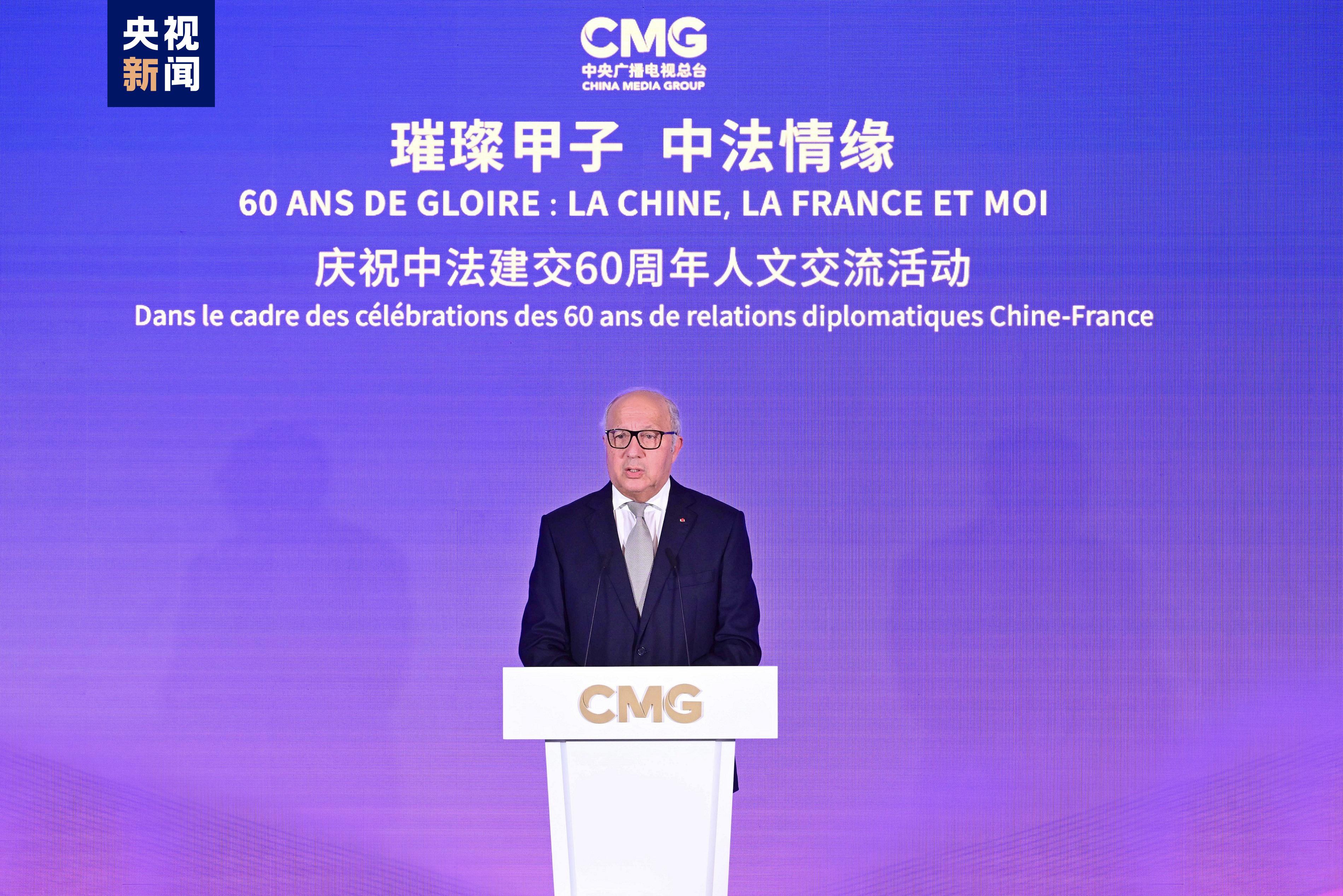 中宣部副部長、中央廣播電視總臺臺長慎海雄,法國前環(huán)境部長、聯(lián)合國前副秘書長拉隆德在活動上致辭,并與歐洲新聞臺董事會主席戴維共同發(fā)布節(jié)目。法國國民議會法中友好小組主席阿洛澤出席活動并致辭。