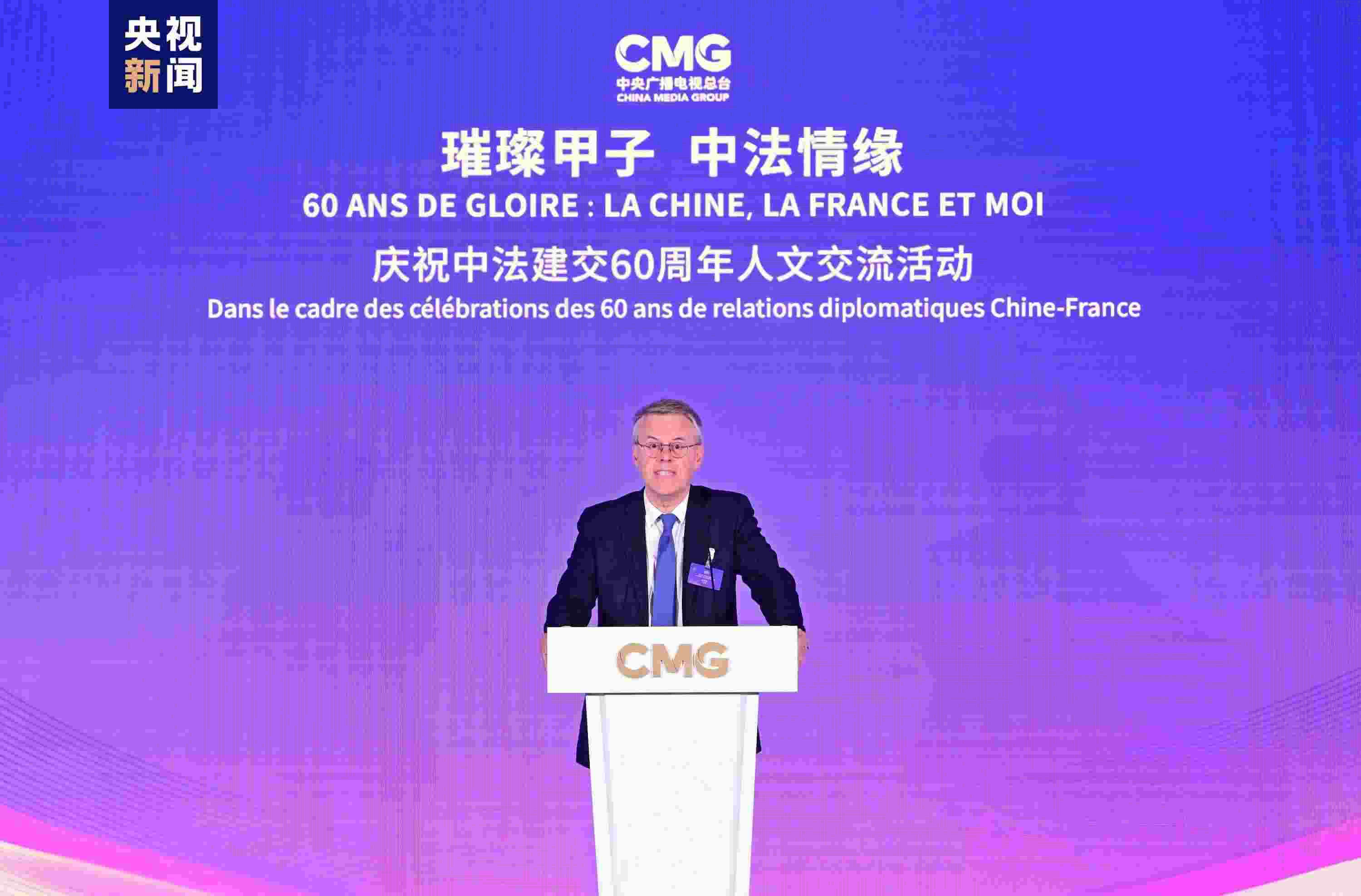 慎海雄表示,習(xí)近平主席指出,敢為人先、與時(shí)俱進(jìn)是中法關(guān)系始終走在中國同西方國家關(guān)系前列的重要法寶。法國是具有獨(dú)立見解、獨(dú)特個性的西方大國,不僅因其經(jīng)濟(jì)實(shí)力,還因國家品質(zhì)和人民氣節(jié),贏得了中國人民的尊重。建交60年來,中法兩國的友誼之船在兩國元首把舵定向下行穩(wěn)致遠(yuǎn)。人文交流貴在思想、文化的交匯、碰撞和吸引。中央廣播電視總臺精品節(jié)目《平“語”近人——習(xí)近平喜歡的典故》(國際版)在法國播出,為大家讀懂習(xí)主席的思想、中國文化、中國智慧打開一扇思想之窗,邀大家共賞璀璨輝煌的中華文明和新時(shí)代中國的獨(dú)特魅力。站在中法建交一甲子的歷史節(jié)點(diǎn),總臺愿與法國朋友們并肩同行,為打造更加牢固、更富活力的中法全面戰(zhàn)略伙伴關(guān)系、推動構(gòu)建人類命運(yùn)共同體貢獻(xiàn)智慧和力量。