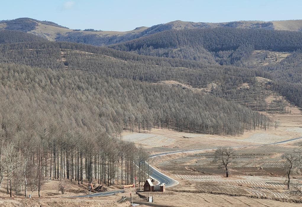 2023年10月,一條新修的公路——縣道X186連接線連通了塞罕壩林場與馬鞍山林場,使兩地通行路程縮短了100多公里。山上樹與樹相接,山下路與路相通,此前相近但無坦途的兩個林場,真正牽起手來,匯聚起擴綠、興綠、護綠的新力量。