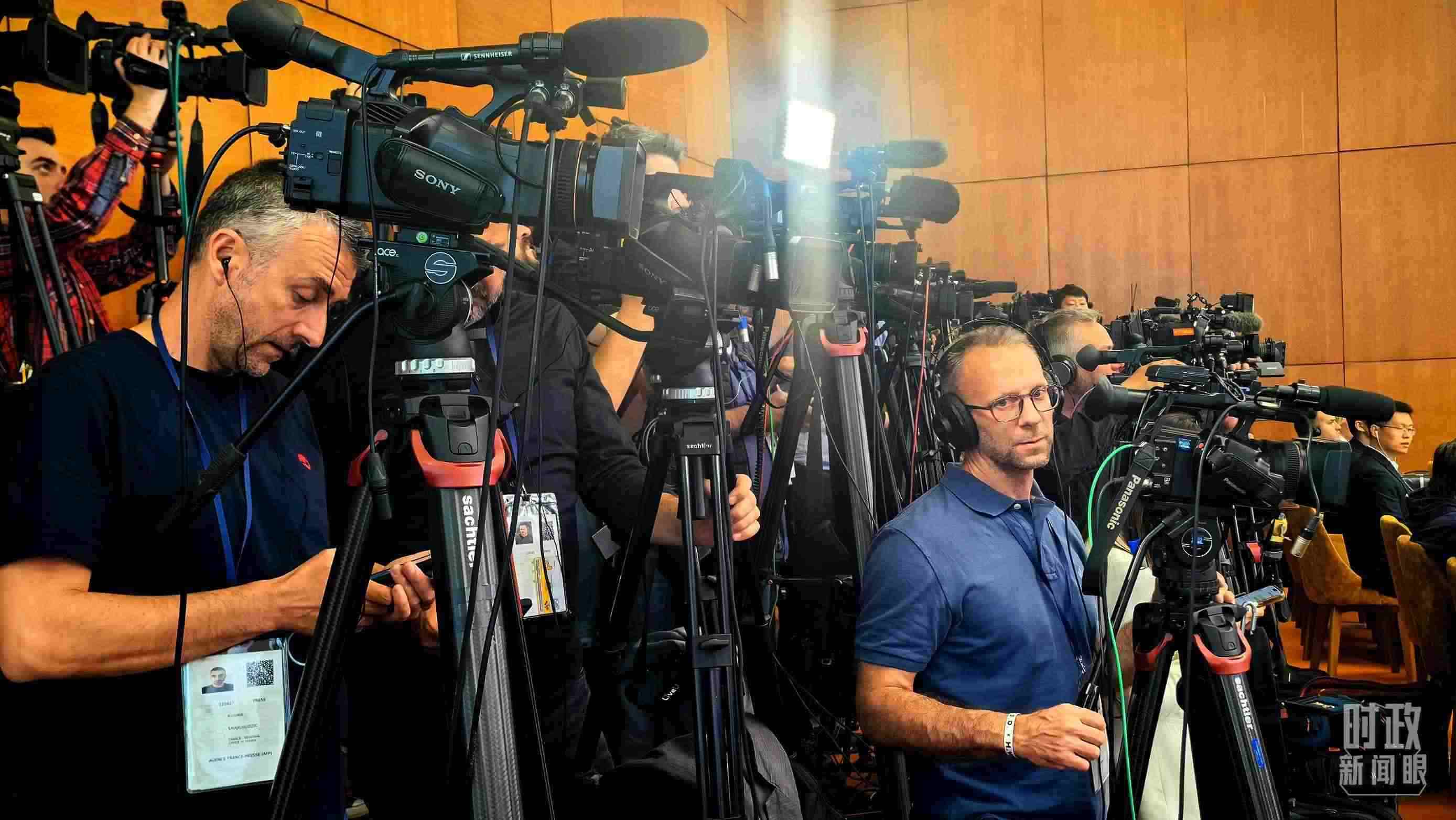 △習(xí)主席同武契奇總統(tǒng)會(huì)談后共同會(huì)見(jiàn)記者,這是會(huì)見(jiàn)開(kāi)始前的現(xiàn)場(chǎng)。(總臺(tái)央視記者鄂介甫拍攝)