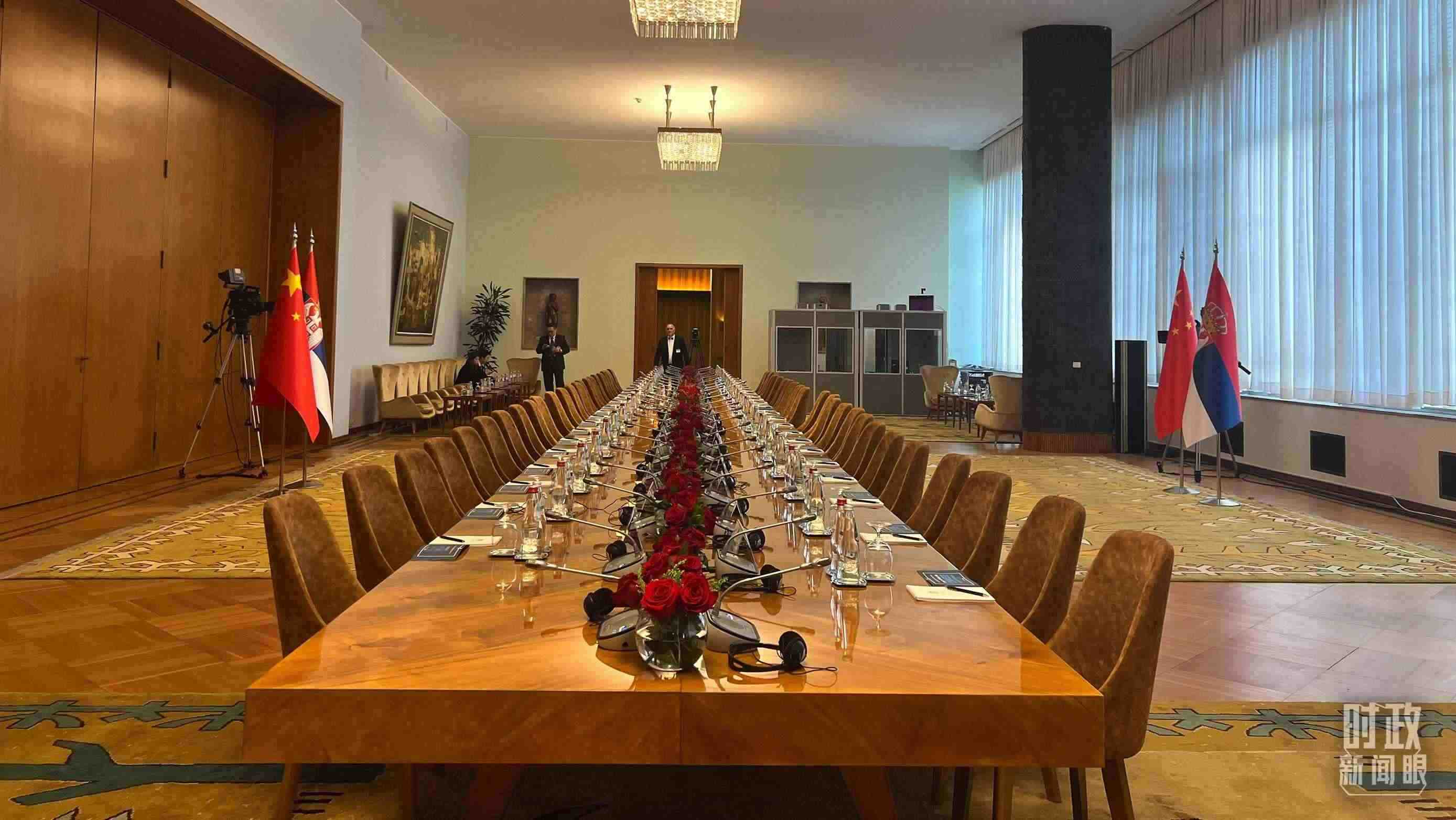 △5月8日上午,習(xí)主席同武契奇總統(tǒng)舉行大范圍會(huì)談,這是會(huì)談開(kāi)始前的現(xiàn)場(chǎng)。(總臺(tái)央視記者張洛嘉拍攝)