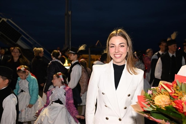 當(dāng)?shù)貢r(shí)間5月8日晚,在匈牙利布達(dá)佩斯國(guó)際機(jī)場(chǎng)歡迎隊(duì)伍中的匈牙利姑娘歐拉·塔瑪拉。新華社記者 謝環(huán)馳 攝
