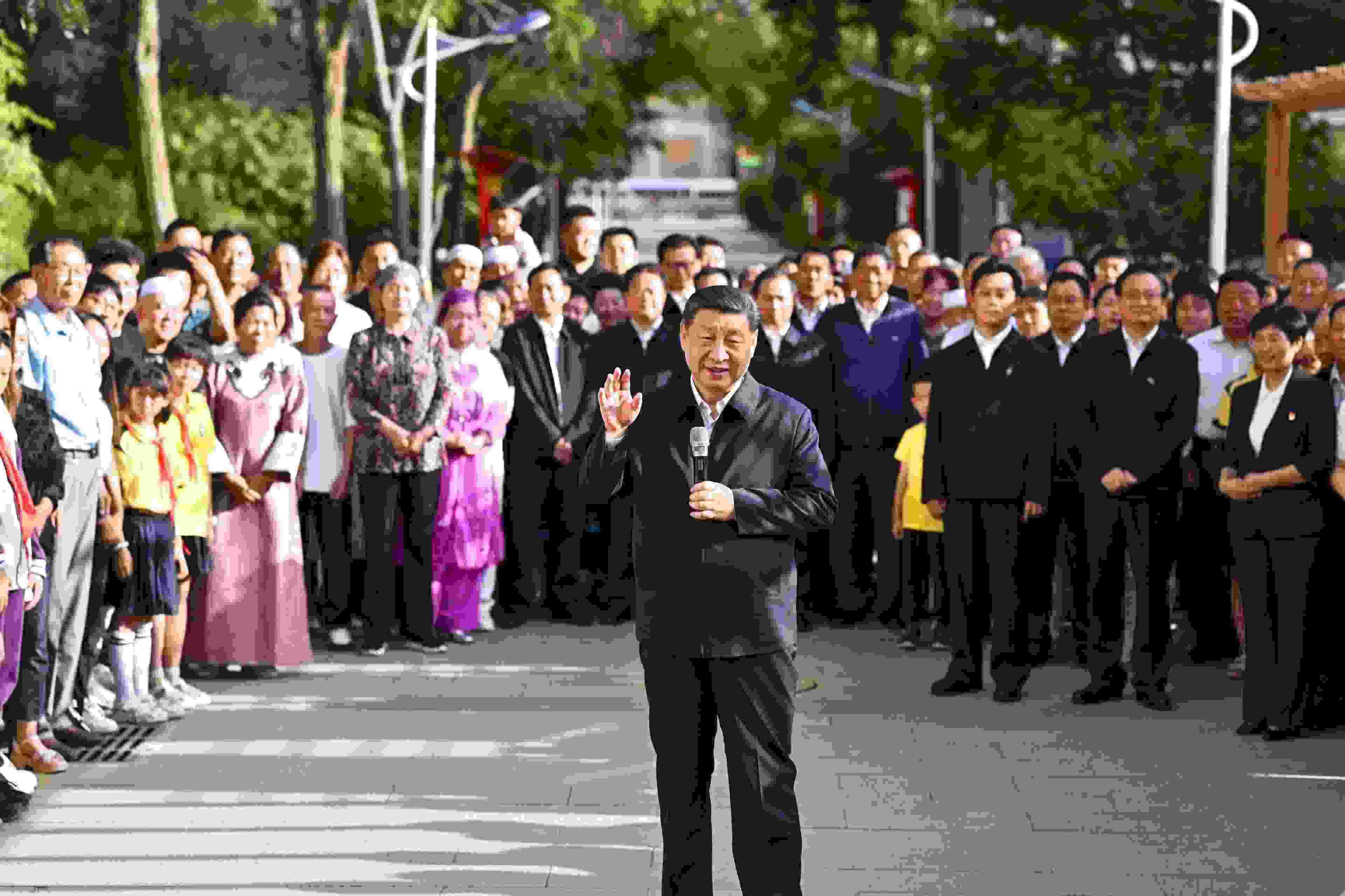 19日下午,習近平總書記來到寧夏銀川市金鳳區(qū)長城花園社區(qū)考察??吹竭@個多民族聚居的社區(qū)其樂融融,各族群眾和睦相處、生活幸福,習近平十分高興。他說,民族團結(jié)非常重要,我們五十六個民族要像石榴籽一樣緊緊抱在一起。五十六個民族凝聚在一起就是中華民族共同體,中華民族是一個大家庭。我們共同奮斗,一起推進中國式現(xiàn)代化,實現(xiàn)中華民族偉大復興?。ǘ派袧桑?/p>