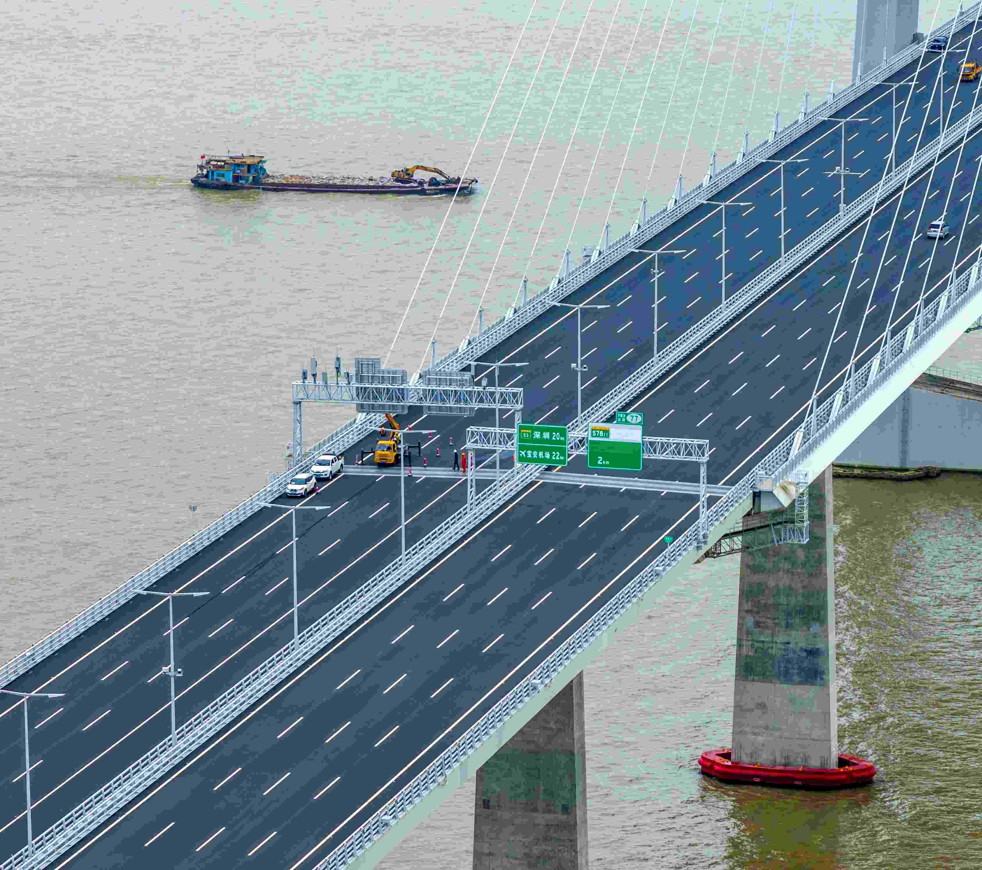 △2024年6月30日,深圳至中山跨江通道建成開(kāi)通。這是通車(chē)前工人在做最后的檢修和裝飾。