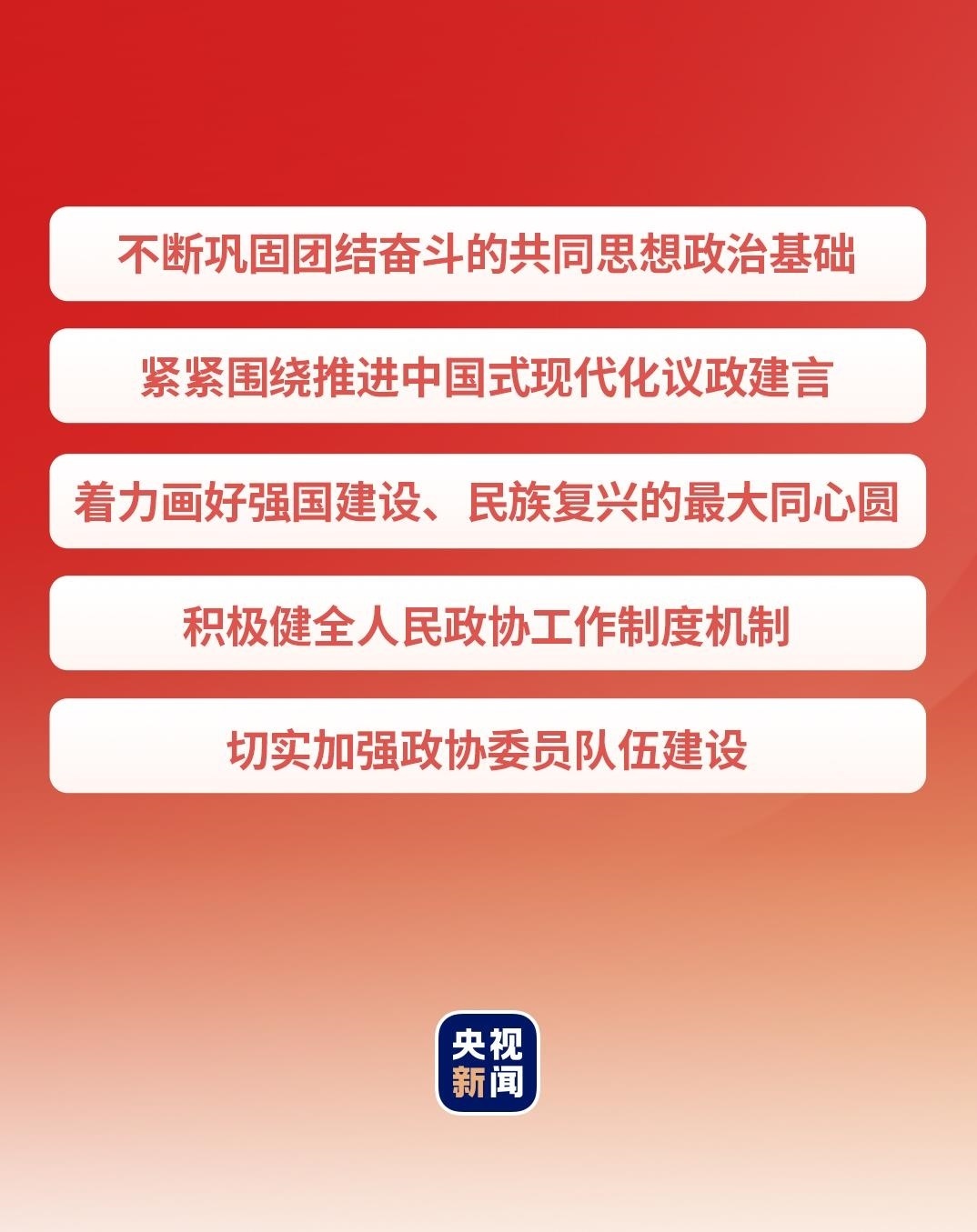 在這次慶祝大會(huì)上,習(xí)近平總書(shū)記從5個(gè)方面提出要求,寄望人民政協(xié)發(fā)揚(yáng)優(yōu)良傳統(tǒng),牢記政治責(zé)任,堅(jiān)持黨的領(lǐng)導(dǎo)、統(tǒng)一戰(zhàn)線、協(xié)商民主有機(jī)結(jié)合,充分發(fā)揮專(zhuān)門(mén)協(xié)商機(jī)構(gòu)作用,為推進(jìn)中國(guó)式現(xiàn)代化廣泛凝聚人心、凝聚共識(shí)、凝聚智慧、凝聚力量。