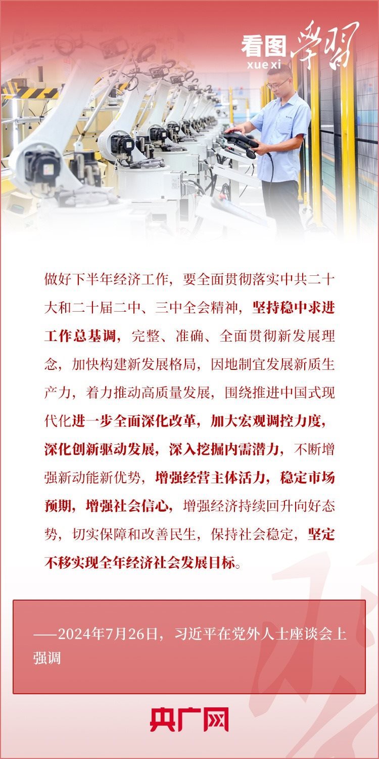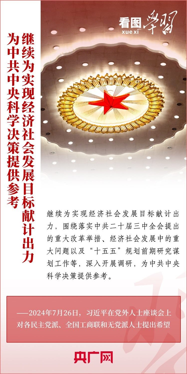 中共中央7月26日在中南海召開黨外人士座談會,就當前經(jīng)濟形勢和下半年經(jīng)濟工作聽取各民主黨派中央、全國工商聯(lián)負責人和無黨派人士代表的意見和建議。習近平總書記主持座談會并發(fā)表重要講話,對做好下半年經(jīng)濟工作作出重要部署,并對黨外人士提出3點希望。一起來學習!
